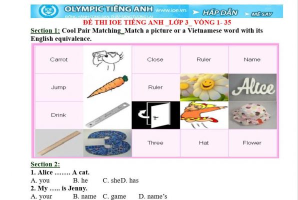 Kỳ thi Olympic Tiếng Anh trên Internet (IOE) làmá»™t sân chÆ¡i tuyệt vá»Âi để các con rèn luyện kỹ năng Tiếng Anh. ÄÂể giúp các con tá»± tin hÆ¡n vànắm vững kiến thức trá»Âng tâm, mình xin gá»Âi tặng ba mẹ trá»Ân bá»™ tài liệu ôn thi IOE lá»›p 3 cá»±c kỳ bài bản vàsát vá»›i đỠthi thá»±c tế.