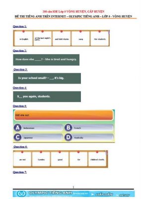 • 200 câu hỏi luyện thi cấp huyện: Tập trung vào các dạng bài khó, giúp con nâng cao tư duy và khả năng phản xạ ngôn ngữ.