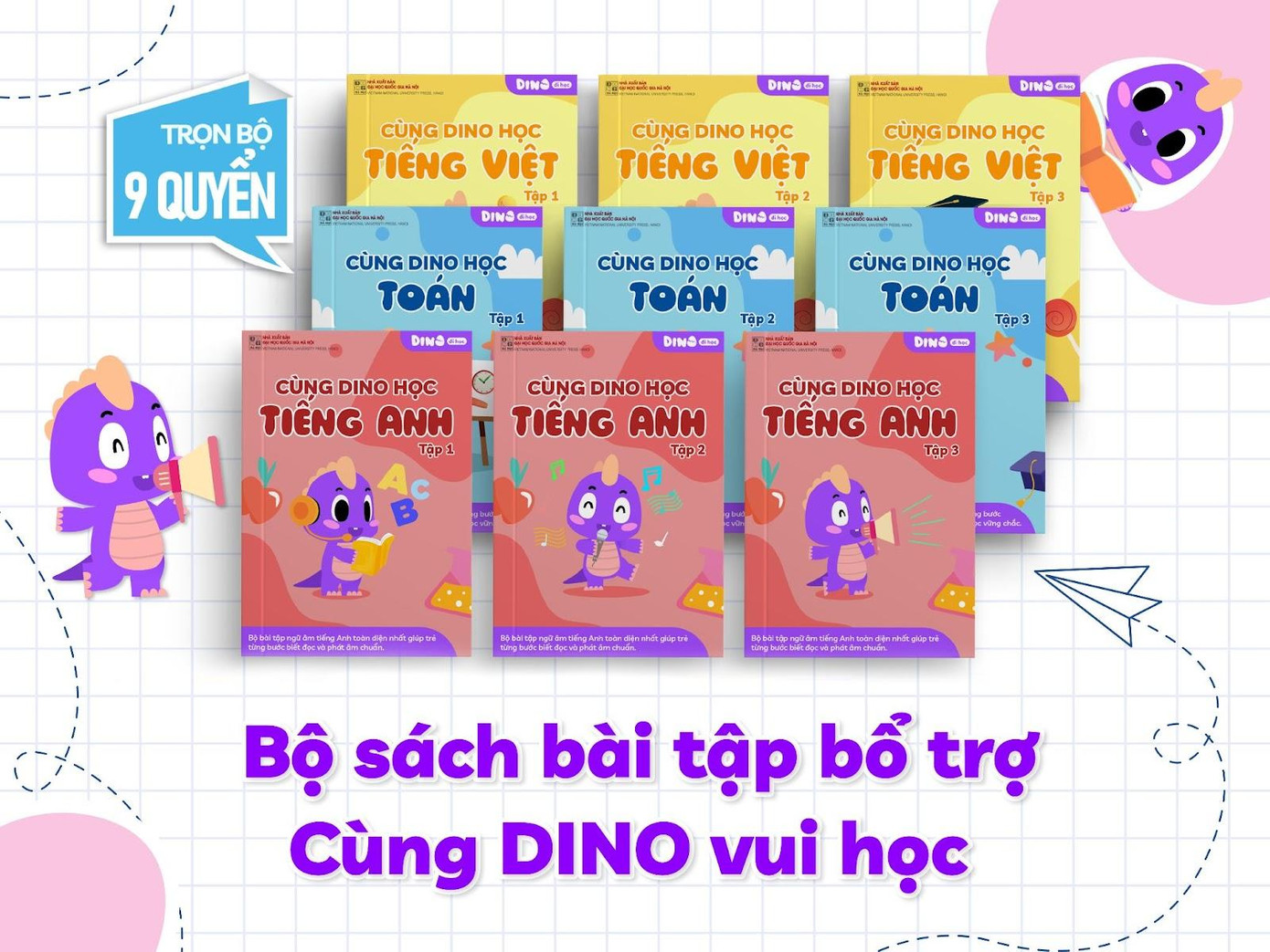 ÄÂược cố vấn bởi các chuyên gia, tiến sÄ© đầu ngành Giáo dục đồng thá»Âi được kiểm định chất lượng vàná»™i dung bởi NXB ÄÂại há»Âc Quốc gia HàNá»™i, Bá»™ sách bài táºÂp bổ trợ Cùng DINO vui há»Âc tÃÂch hợp đầy đủ kiến thức tiá»Ân tiểu há»Âc đạt chuẩn Bá»™ GD&ÄÂT. Cùng DINO vui há»Âc được đánh giá làbá»™ sách tiá»Ân tiểu há»Âc đầu tiên hợp nhất chương trình tiểu há»Âc chÃÂnh quy, mang đến cho trẻ má»™t chương trình tiá»Ân tiểu há»Âc đầy đủ, bài bản vá»›i ná»™i dung được kiểm định ngay tại nhà.
