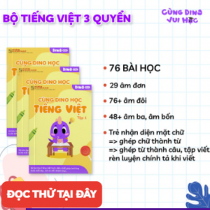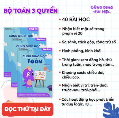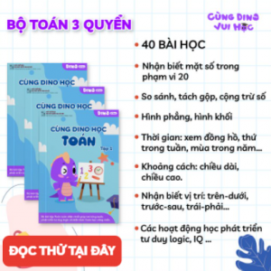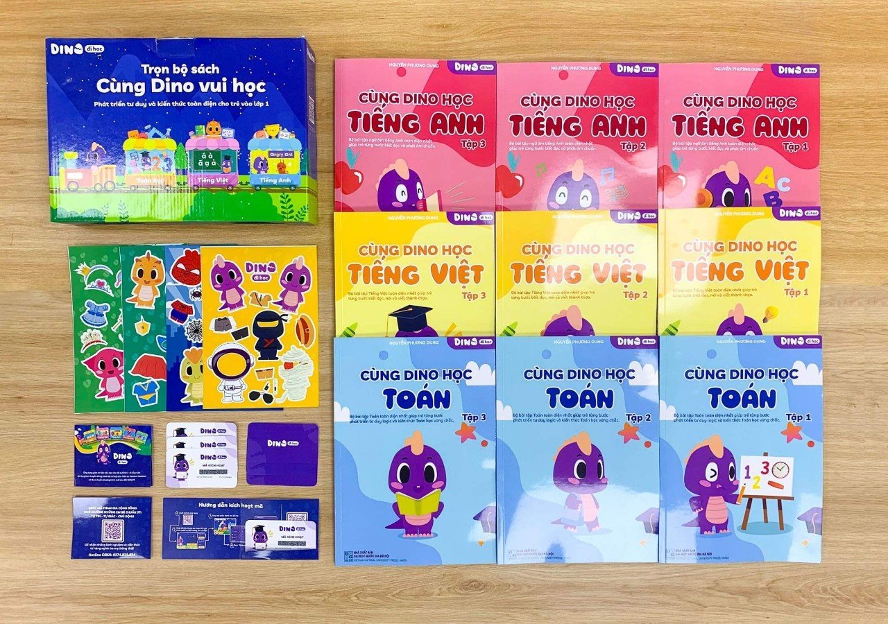 Bá»™ sách bài táºÂp bổ trợ: Cùng DINO vui há»Âc, dành cho trẻ độ tuổi mầm non vàtiá»Ân tiểu há»Âc. Bá»™ sách bao gồm 09 quyển tương ứng vá»›i 03 môn há»Âc: Toán, Tiếng Việt, Tiếng anh vá»›i hÆ¡n 1500+ hoạt động há»Âc phong phú má»—i môn, giúp trẻ phát triển cân bằng tràtuệ ở cả hai bán cầu não như tư duy logic, váºÂn động cắt, dán, lắp ghép, tô màu…